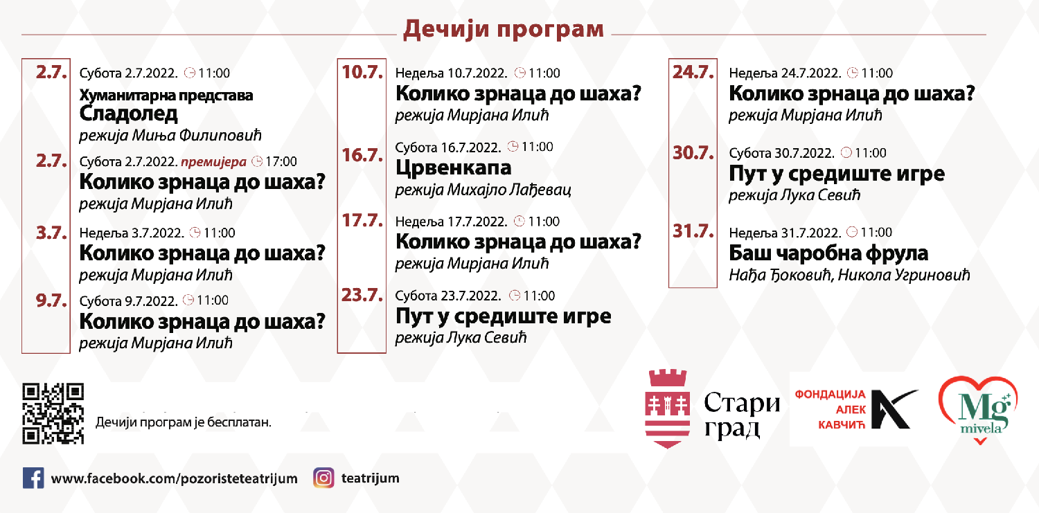 U avgustu na repertoaru će biti i predstave "Mali princ", "Pipi i Petar Pan u potrazi za Crvenkapom" i "Maštošumske pitalice".