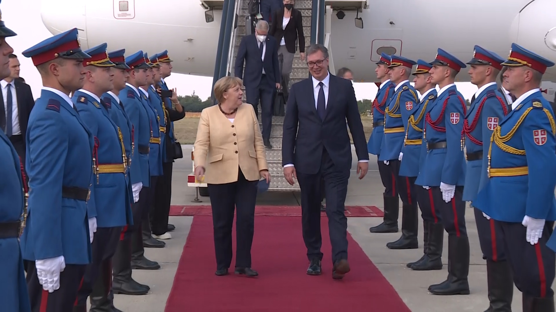 Došao sam mnogo ranije u aerodromski salon i mislim da sam 500 puta od sale do piste ponovio koliko radnika zapošljavaju nemačke firme, koliko je investicija, trgovinska razmena, sve detalje Briselskog sporazuma. Imam strah i tremu da nešto ne pogrešim, naveo je Vučić.
